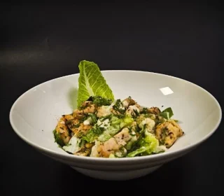 Crispy croutons are scattered throughout, adding an extra layer of crunch, and a sprinkle of freshly grated Parmesan cheese enhances the dish’s savory richness. This combination of flavors and textures creates a well-rounded and satisfying salad that is perfect for a light lunch, dinner, or a starter to a more extensive meal.